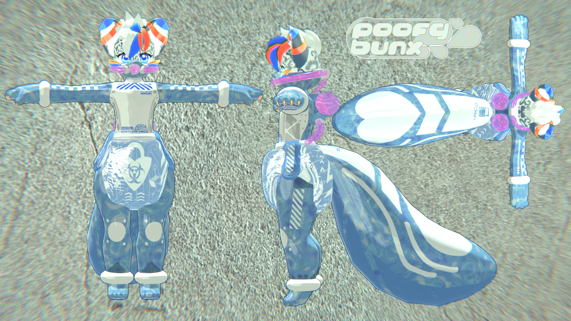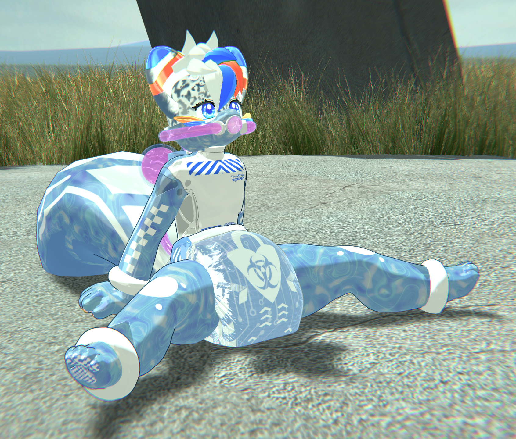 A self-contained life supporting hazardous environment suit originally intended for low oxygen applications, the VB-04 SPLASH Kit was created to utilize the VB-04 for underwater infrastructure and marine biology work, letting operators stay comfortable at home or work in VR while their proxy bodies carry out dangerous underwater tasks for them.